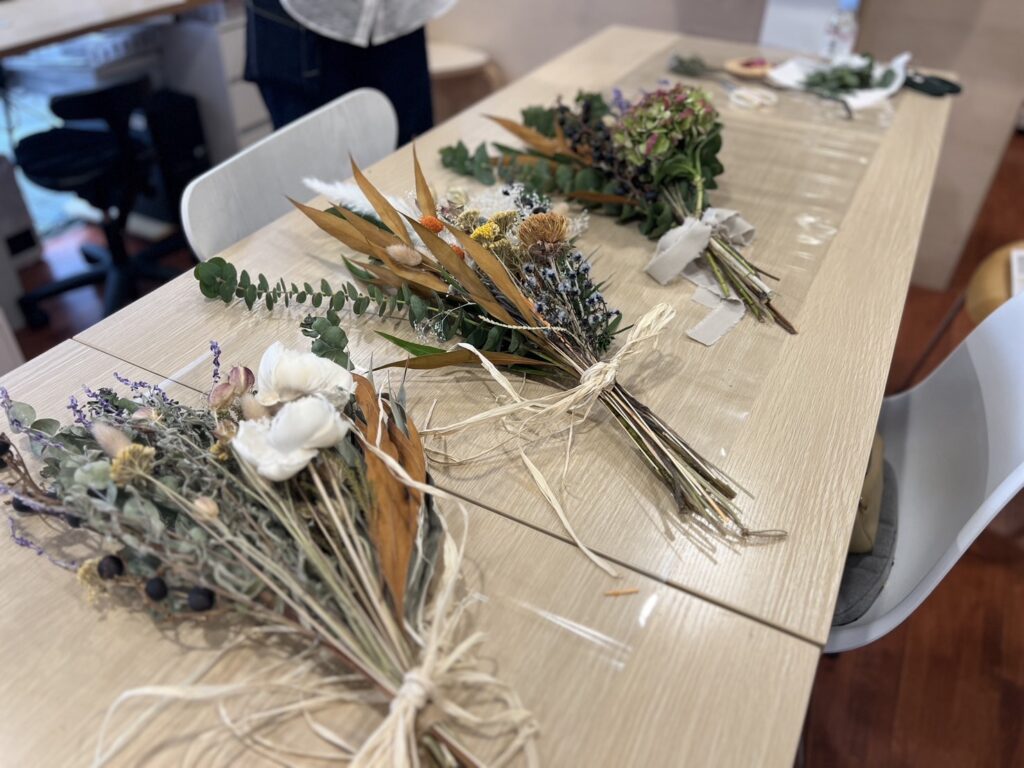 WAKA Flower Schoolのドライフラワーのスワッグは厳選した花材でご用意しています。落ち着いた色味でインテリアに馴染みやすいデザインです。
